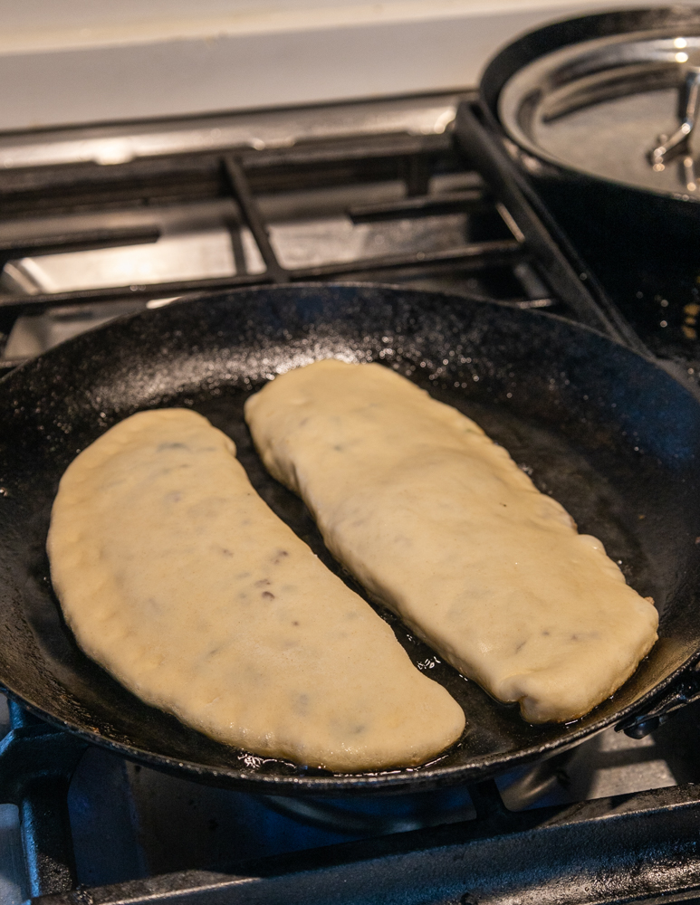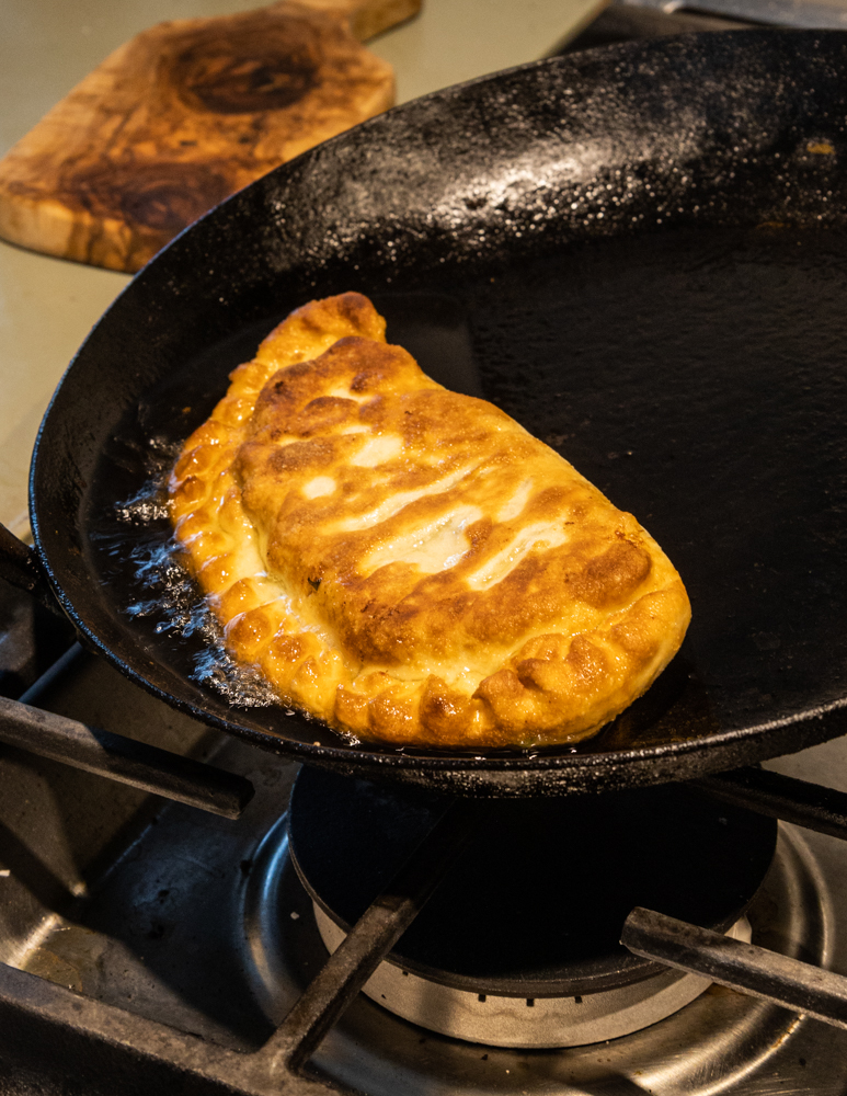 While most people know calzones as being baked, I prefer to pan or shallow-fry them, which gives them a soft, chewy texture. If you prefer to bake them I’ve included instructions to do so in the recipe.