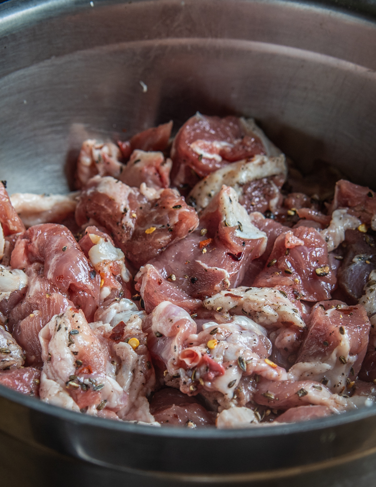 Dice and season the meat