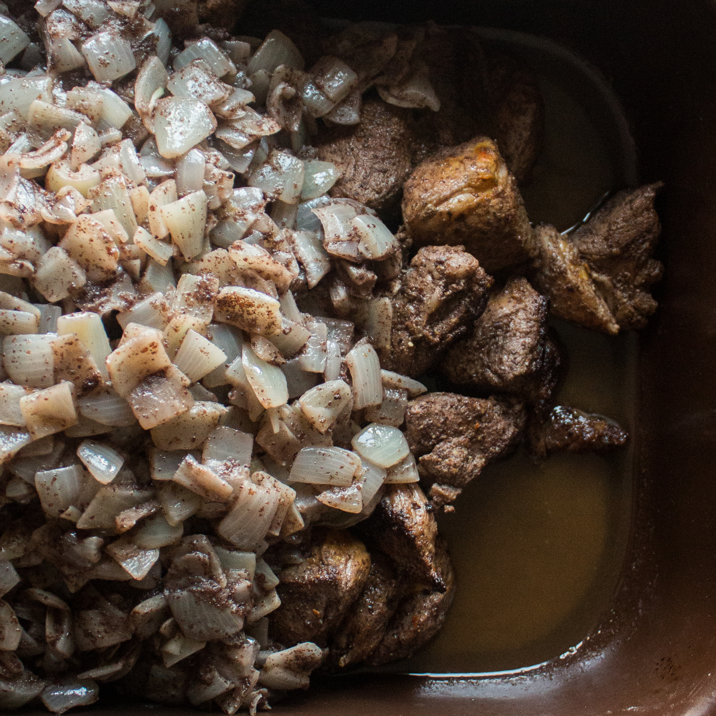 - Dice the onions medium-large, then add the 2 teaspoons of salt and sweat in the lamb fat for 10 minutes, covered, stirring occasionally until the onions are wilted. Preheat the oven to 300.