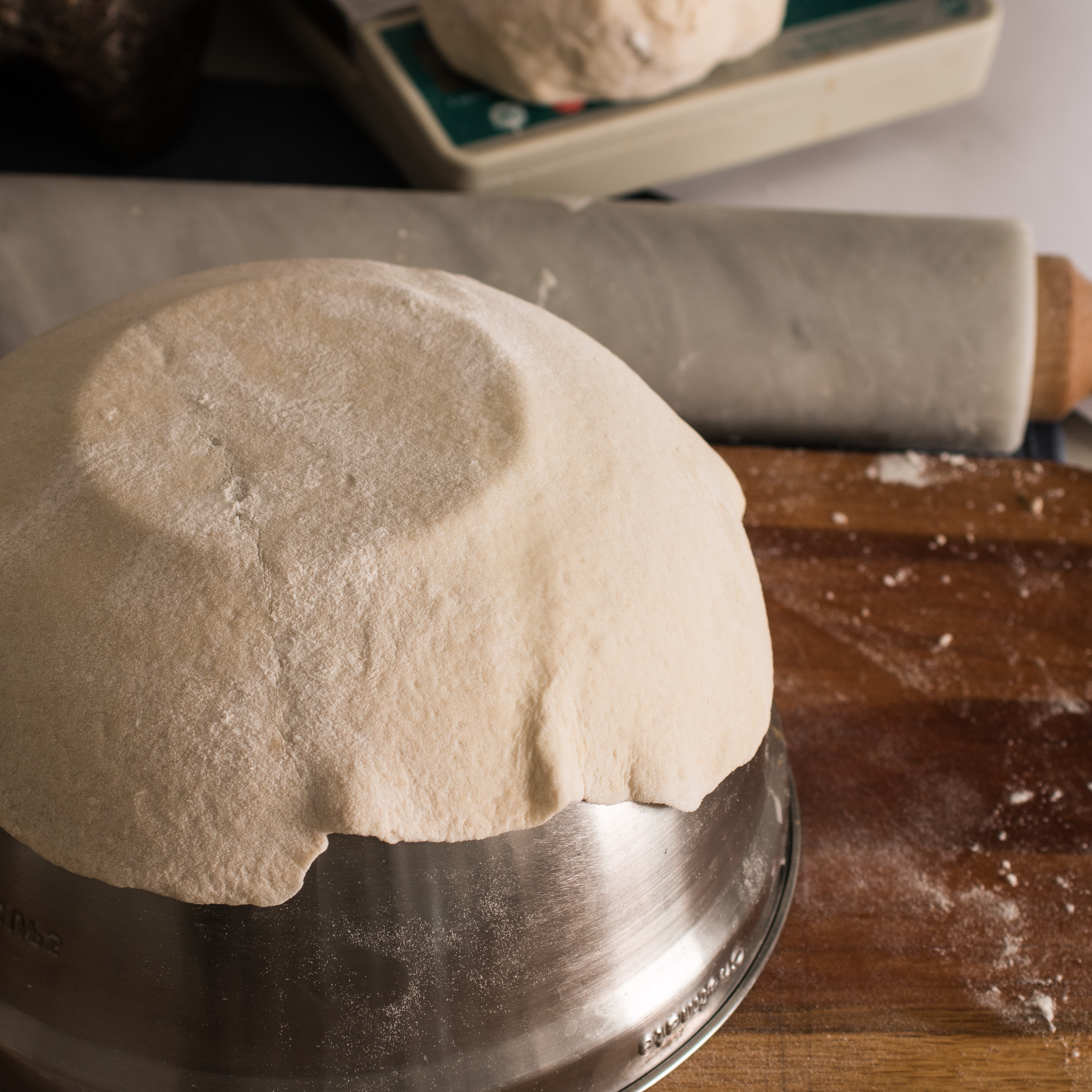 - Flour a work surface, then portion out roughly 2 ounce balls of dough.