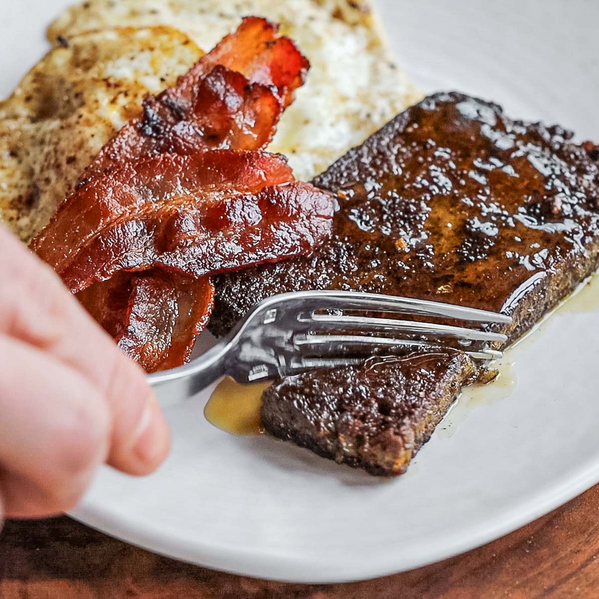 For those wary of eating organ meats because of a stronger flavor, scrapple might just be the answer. Cooking the meats with cornmeal smooths out and mellows the flavor, and mixing the cornmeal and buckwheat gives it a smooth, even texture that fries up beautifully in a pan. Odd as it may sound to some, the traditional way to eat scrapple is often for breakfast, garnished with maple syrup or fruit preserves. We think it’s delicious.