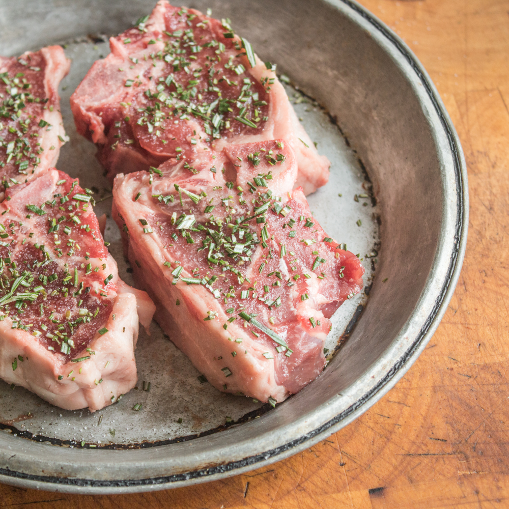 - Pat the lamb chops dry, then make a few, shallow slices in the fat cap to help it render and crisp. Season the lamb chops with salt, pepper and the chopped rosemary on all sides. Refrigerate the lamb for an hour or two, and up to 24 hours, uncovered, turning once or twice to help dry them out and help them brown.