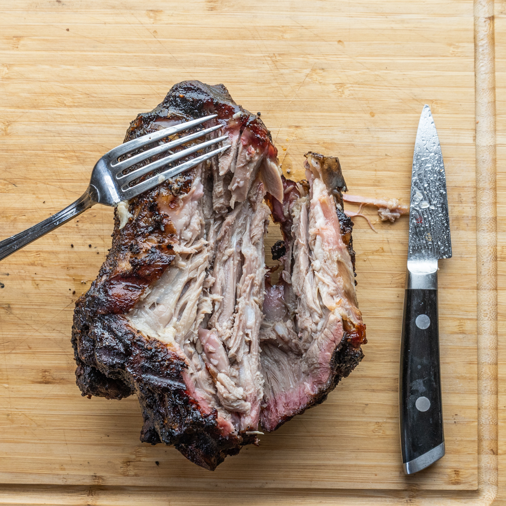 Lamb or goat neck is a great cut to put in the smoker. Use the pulled meat anywhere you would shredded, smoked pork.