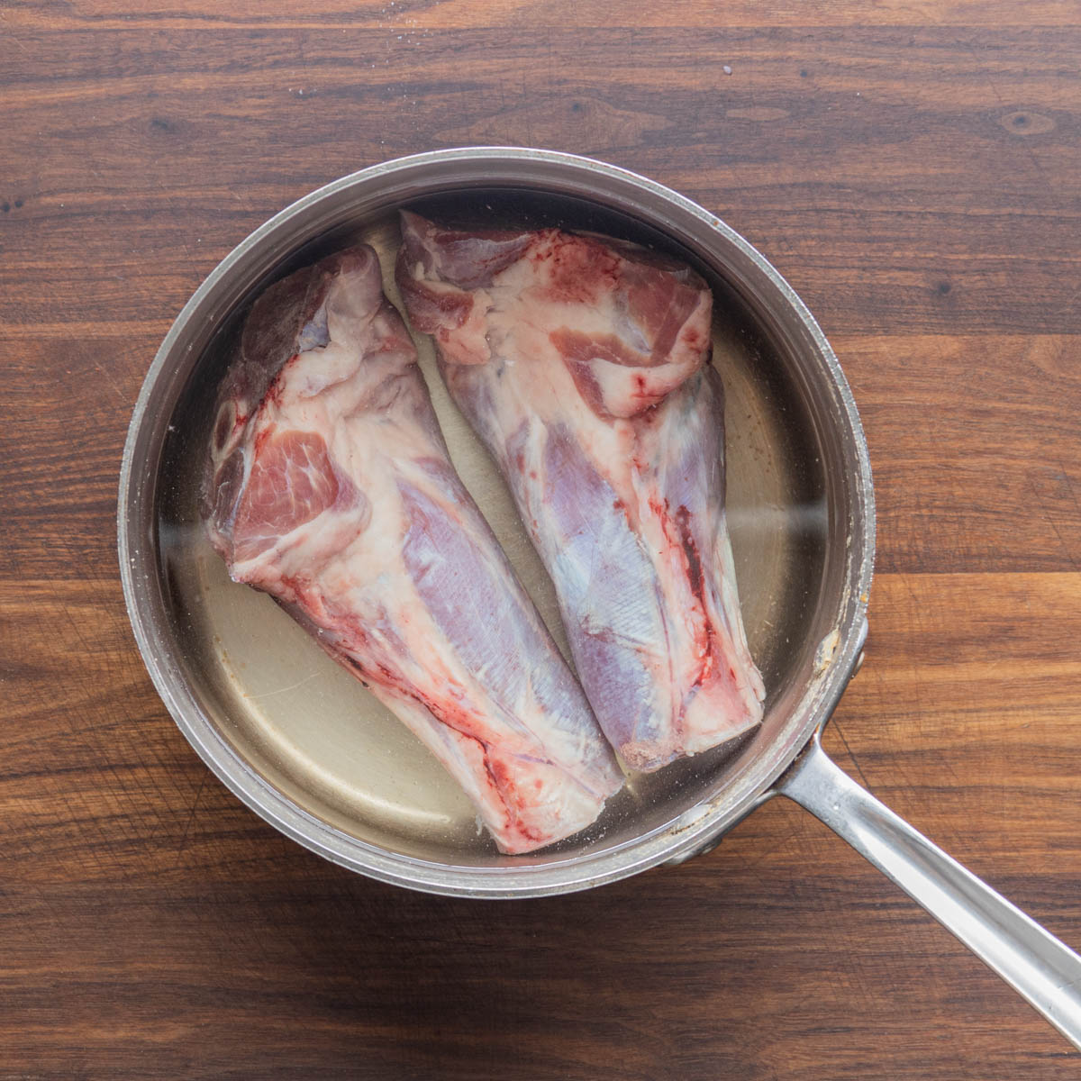 - Mix the water and salt for the brine until dissolved. Soak the lamb shanks in brine overnight.
