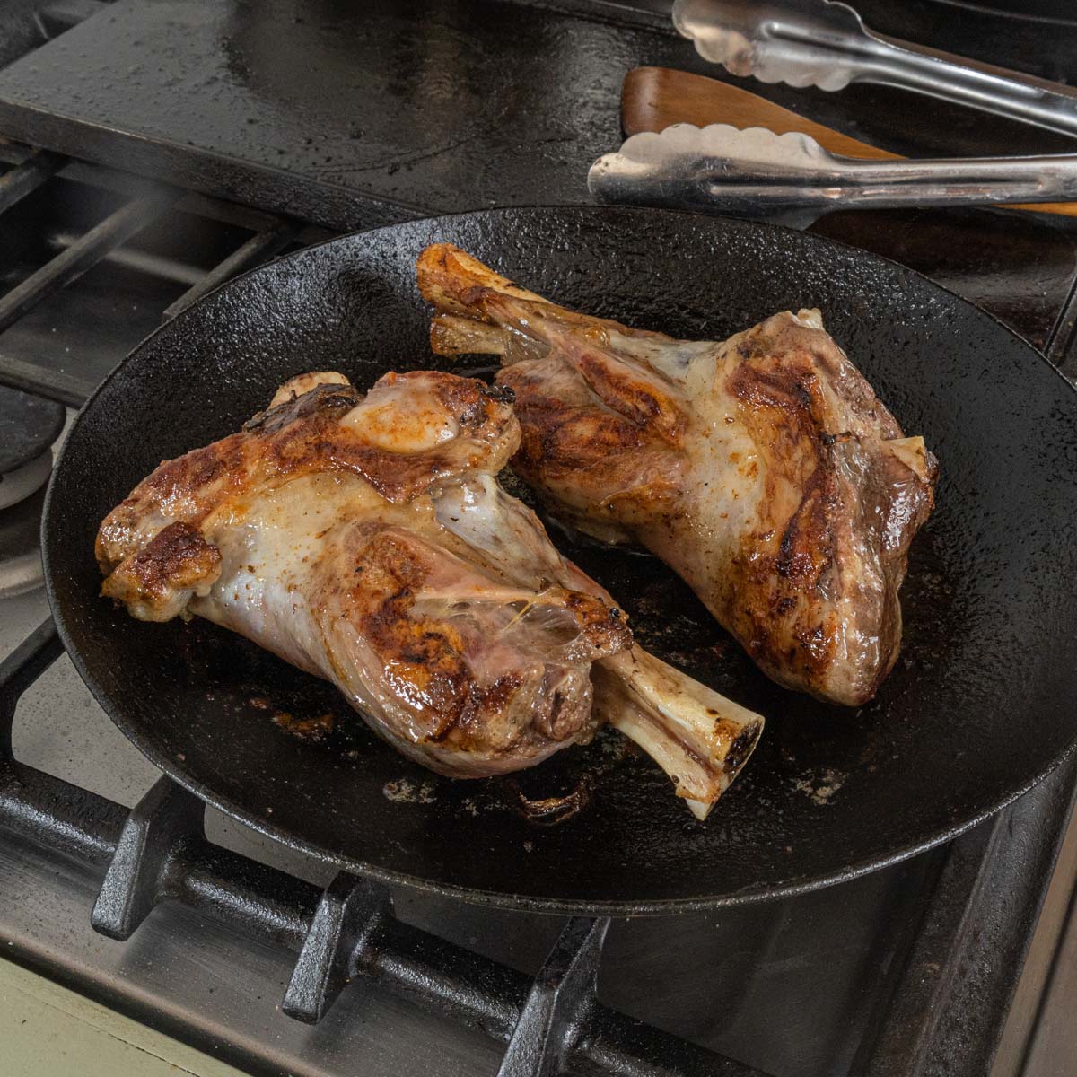 - Remove the shanks from the brine and dry with paper towels. Rub with light olive oil or cooking oil. Brown the shanks on a grill, in a heavy cast iron pan, or by roasting in the oven for 30-45 minutes at 450 F.