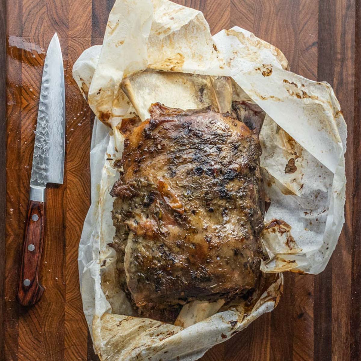 Wrapping in parchment is optional, if you don't have any parchment, put the shoulder in a baking dish with a lid and enough water to barely cover the bottom of the dish. Put the lid on and cook, covered until the meat is fork-tender. Or you can wrap the lamb in aluminum foil.ÂInternal temperatureÂ