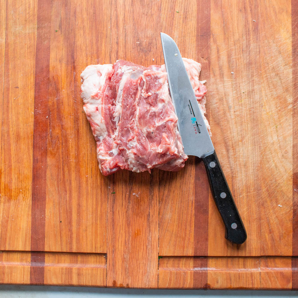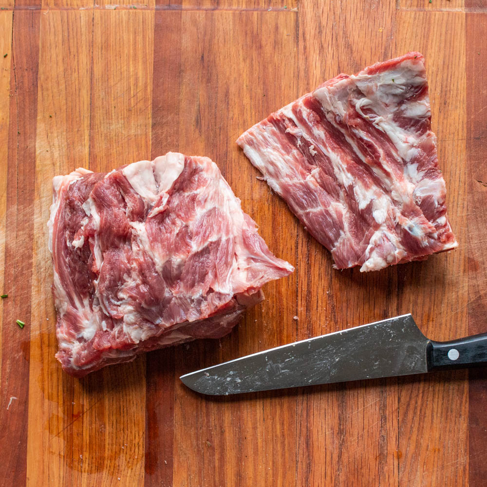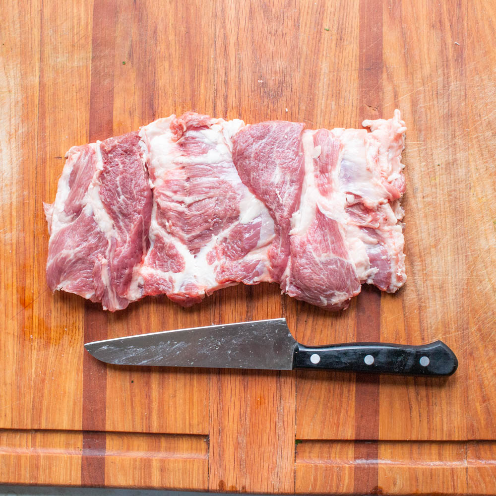 You’ll need a sharp paring knife and some patience, but the meat that’s on this cut is some of the best on the whole animal for slow cooking. If deboning and rolling sounds like a lot of work, you can also just season the saratoga cut, brown it and cook like a pot roast with the bone in. The images below illustrate how to debone and stuff the roll.