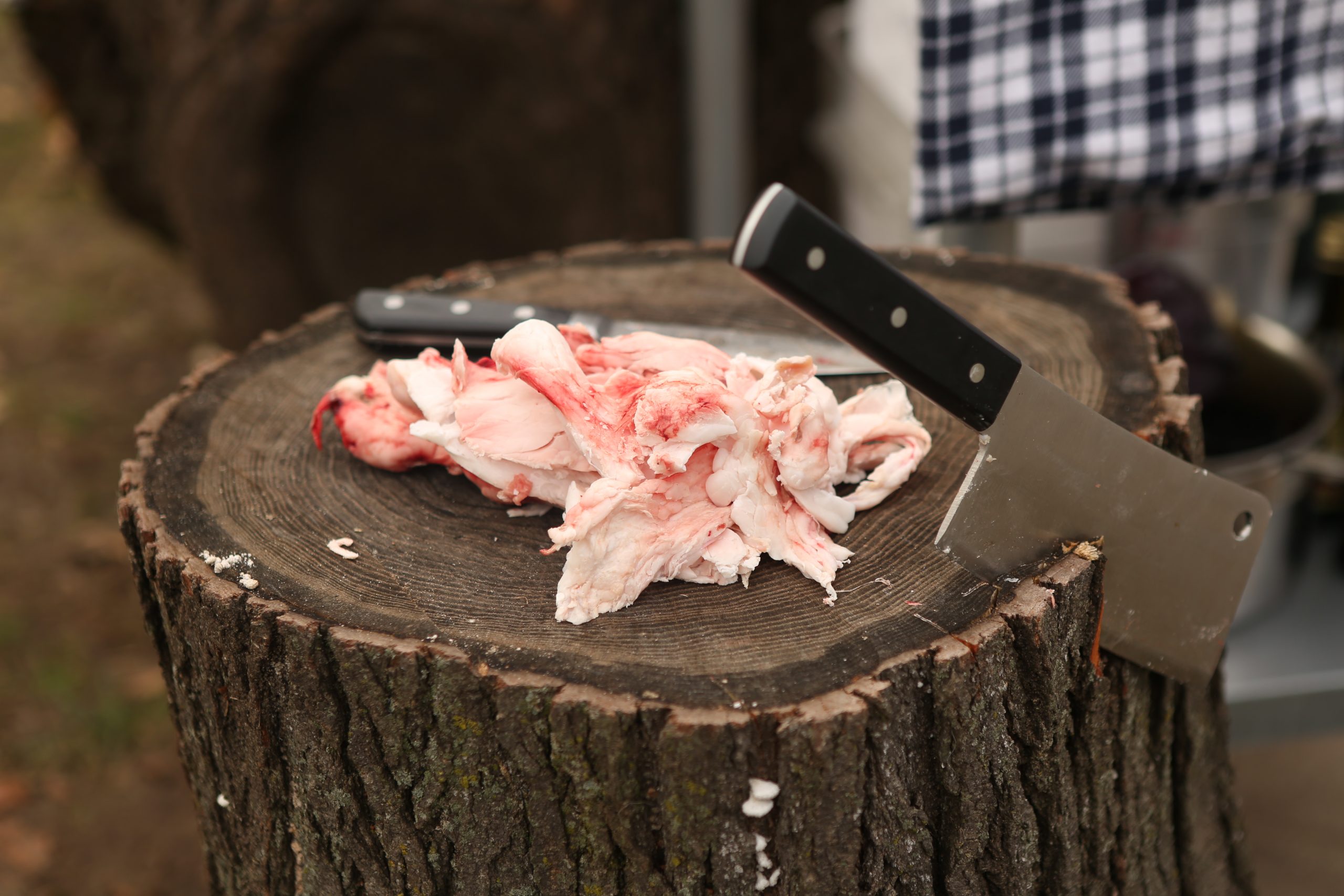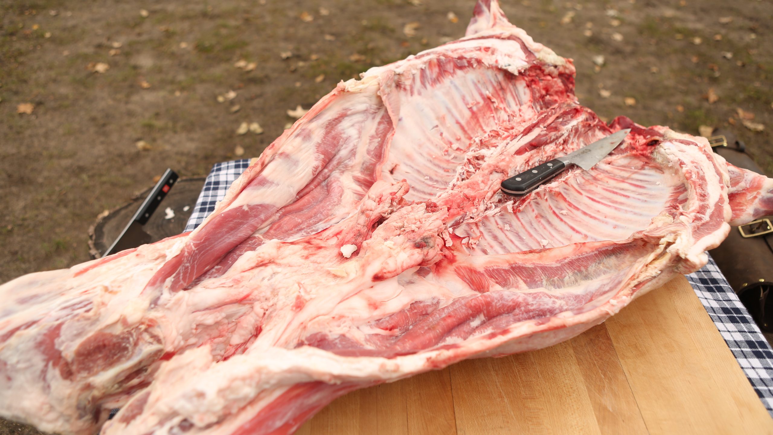 - Cut the sternum and spread rib cage open. Once you can get your hatchet in the chest cavity begin to break inner clavicle bones so when you push on the ribs it breaks open.