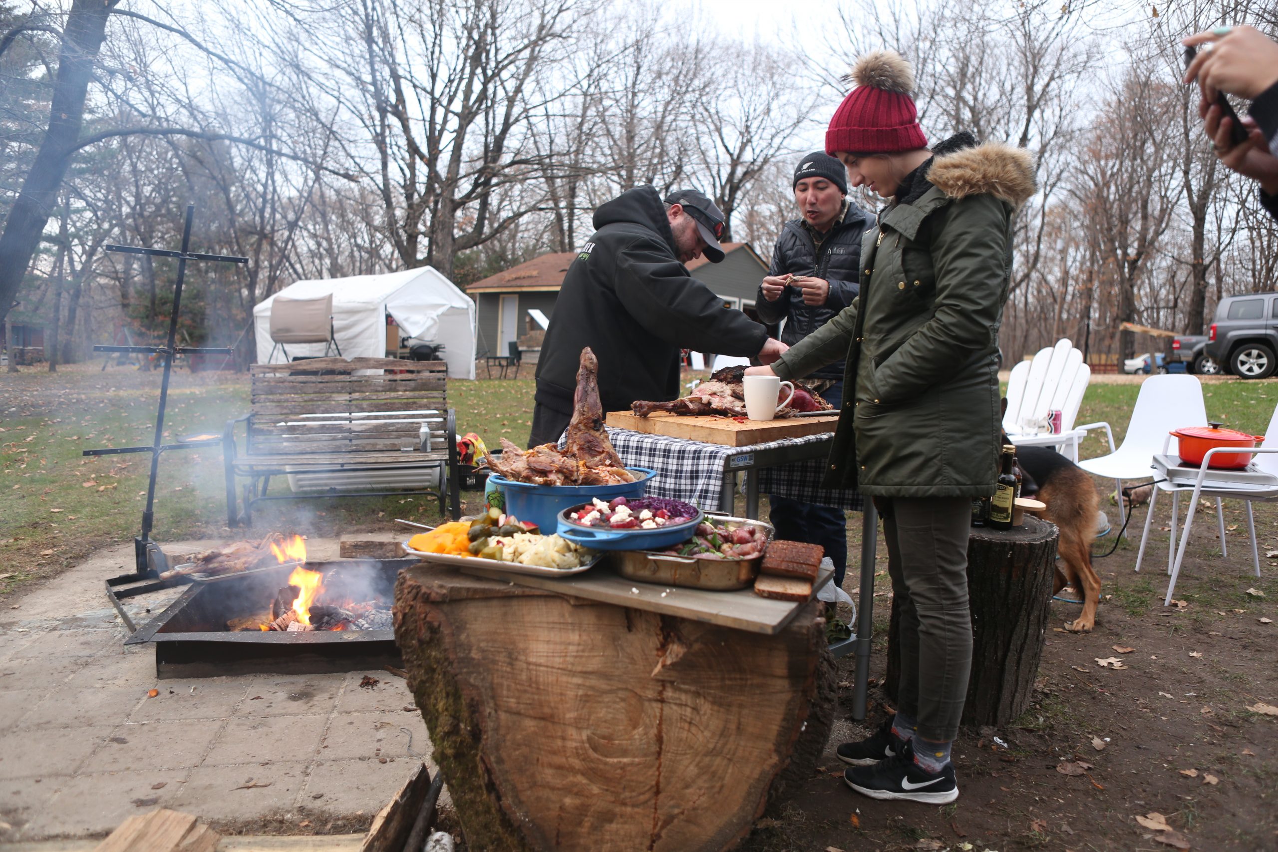 • After about 5 hours, you will start to see the shoulders bleed and the collagen start to give on the skin side. It’s time to turn animal over on its stake and continue to cook. The whole process may take up to 7 hours and you will get the best results when you have more time flexibility. The longer it cooks, the better it will be.